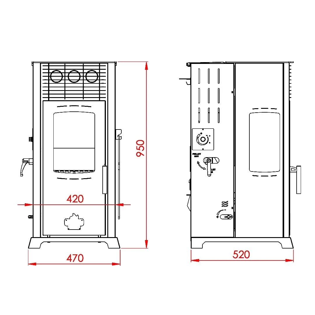 · Eco 8 KW FAN: Tek camlı bir yapıya sahiptir ve fanlıdır. Fan sobanın çalışması için gerekli değildir. Amacı sobanın üzerinde biriken sıcaklığın ortama hızlı bir şekilde dağılımını sağlamaktır. Kullanımı opsiyoneldir.