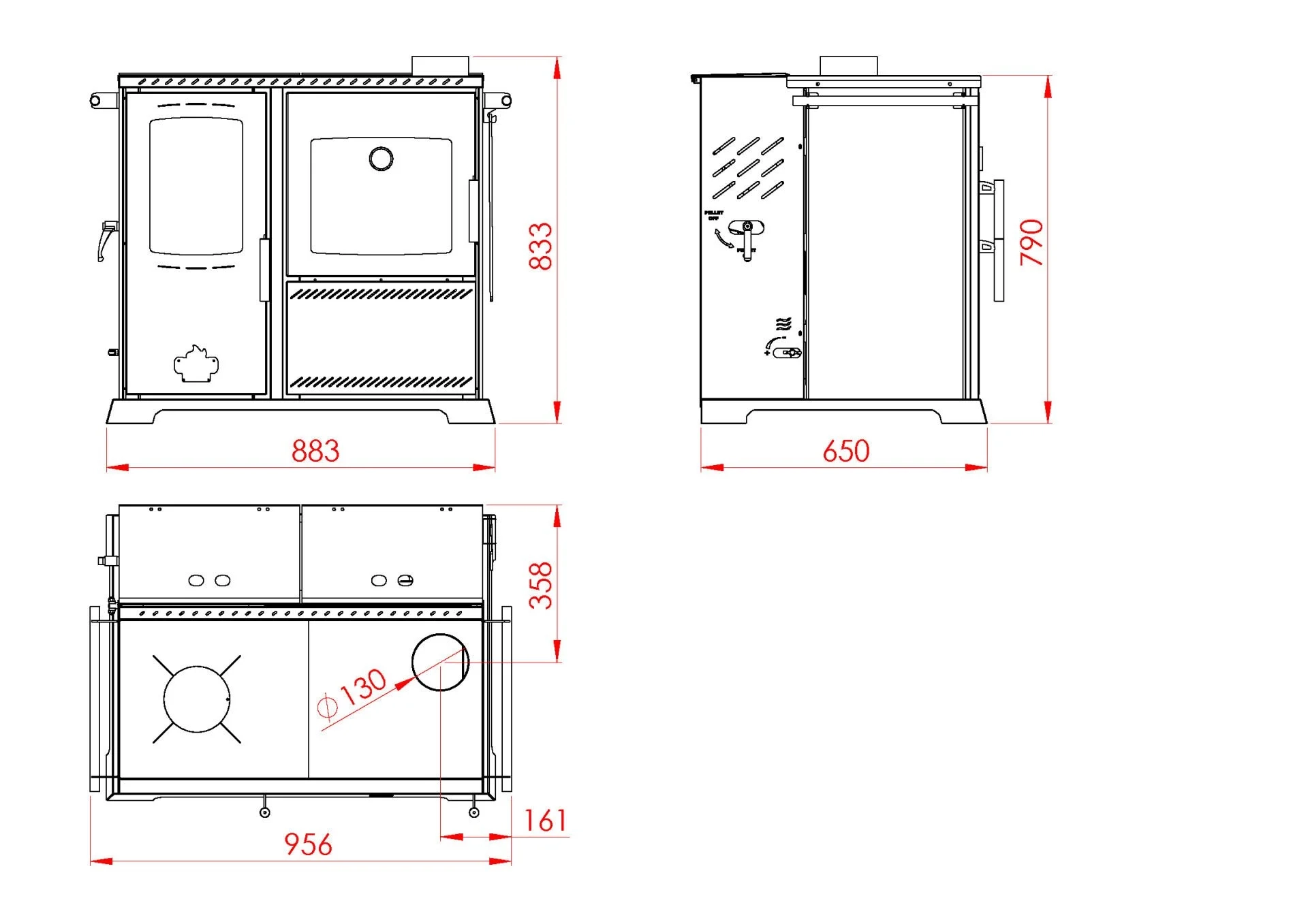 · Fırın sıcaklığı 270 °C dereceye kadar çıkabilir ve ısıyı sabit bir şekilde eşit dağıtır. (Fırın sıcaklıkları odun ve pelet yakıtının kalorisine göre değişiklik gösterebilir.)